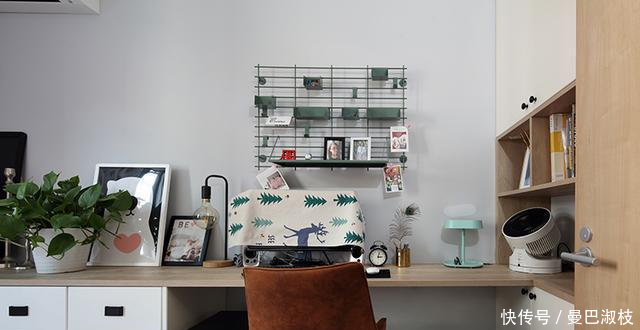 客厅本来的格局空间是很大的,不过后面业主觉得太浪费了,只选择了留下一小部分空间。沙发区买的绿色双人沙发,搭配三色的地毯更显小清新。背景墙用几幅装饰画进行点缀,让墙面不会太单调。