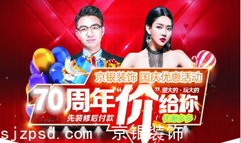 京银装饰国庆签单优惠活动开始啦:1、预约即提供免费上门验房、免费上门量房、免费预算报价、免费接送、免费平面方案、免费设计;2、签单即赠送开荒保洁服务;3、签单即享主材免费升级服务: (1)选经济装客户(出租房装修、过渡房装修等)赠送2000元主材升级包; a、卫生间柱盆免费升级为60浴室柜; b、免漆门免费升级至生态环保门; ...